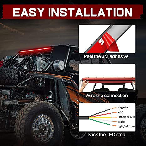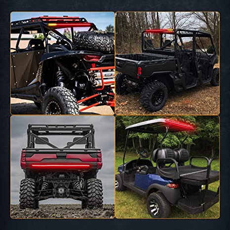 EASY & CLEAN - No need to drill holes. This universal tail light strip features slim housing with black interior for easy installation and hide. Can be mounted on rear crossmember, hitch cargo carrier, roof rack, tailgate, bumper, etc.. Fit for all 12V vehicles, ATV, UTV, Golf Cart, Club Car, Polaris RZR Ranger, Can-Am, Yamaha, 4 Wheeler, Car, Wrangler, Ford, Pickup, Truck, Trike, Trailer, SUV, Off-Road Vehicle, and more!