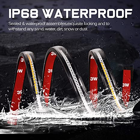 DURABLE & SAFE - This UTV strip light is equipped with IP68 Waterproof / Dustproof rating and flexible housing, durable 3M sticker, and wear-resistant silicone wire, over 50,000 hours lifespan, over temperature and overload protection.