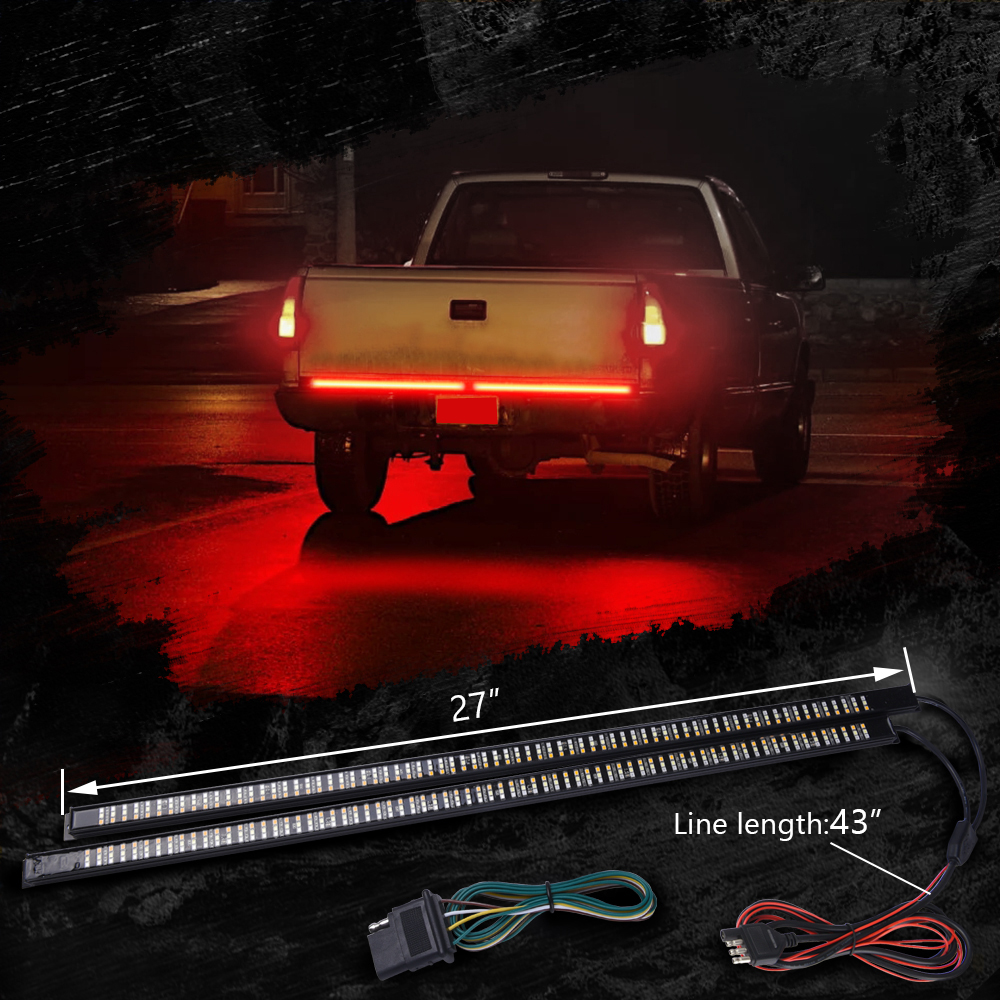 60" (2PCS) Universal Triple LED Aluminum Strip Tailgate Bar Red Driving Light Sequential Amber Turn Signal White Light
